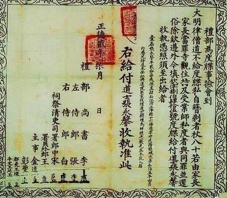 度牒是什么呢?就是详细记载僧尼的原籍、俗名、年龄、所隶属的寺院、师傅名字、师承关系等信息的证件。僧尼死后或者中途还俗,度牒必须上缴。