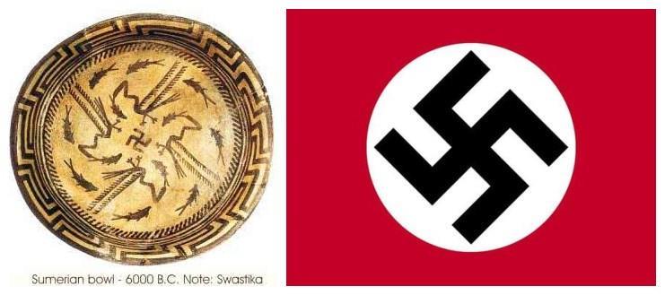 苏美尔的万字“卍”符与希特勒纳粹的万字符虽然都是尖头超下,但旋转方向恰好相反,对于纳粹这种反人类反自然的狂悖,其覆灭也是历史的必然,您说呢?