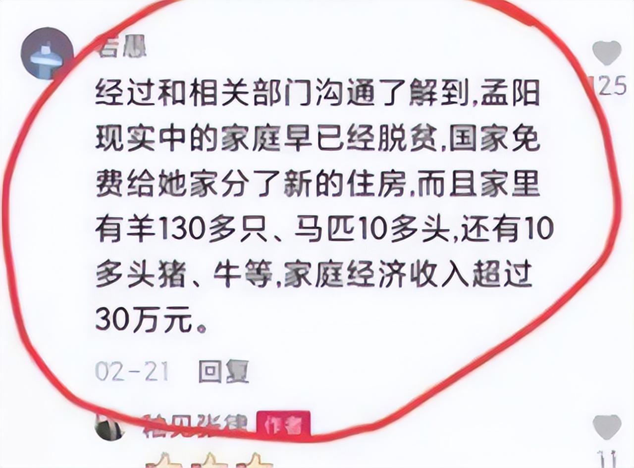 后来网上曝光了孟阳生活中的照片,发现她平时打扮得很时髦,只有拍视频的时候才穿破烂的衣服。而且有人联系了相关部门,了解到孟阳家以前确实很穷,可前几年就脱贫了。