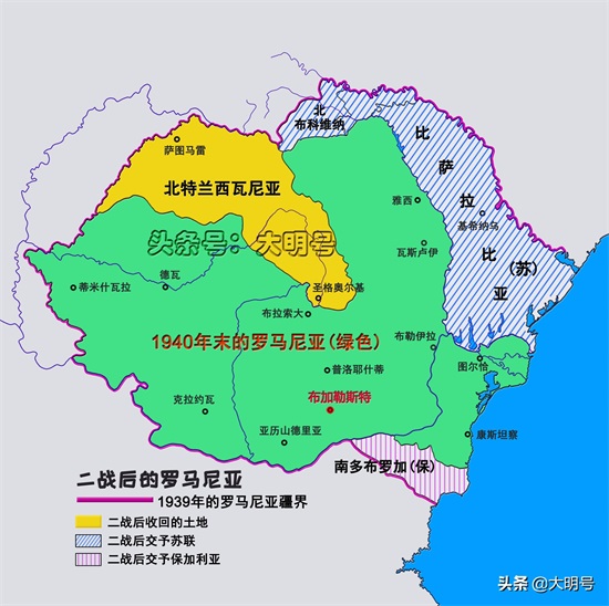 二战结束后的1947年2月10日,反法西斯联盟和5个德日仆从国正式签署和平条约,内容涉及审判战争罪犯、赔款、疆界划定和限制军备等。其中罗马尼亚疆界被定格在了1941年1月1日时的状态,这样苏联于1940年6月强占的比萨拉比亚和北布科维纳就成为"合法之地"。