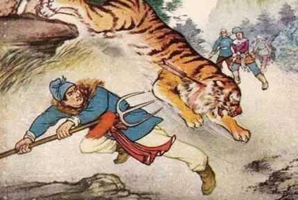 卞庄子想要去刺杀老虎,旅馆的童仆制止他,说:“两只老虎正在吃一头牛,吃得有香甜后必定会争斗,那么打斗的结果是大虎受伤,小虎死亡,你再朝着受伤的老虎刺去,一个举动(就)一定能有杀死两老虎的名声。”卞庄子认为童仆的话是对的,就站着等待它们相斗。一会儿,两只老虎果然斗起来了。大虎负伤,而小虎死了,(这时)卞庄子朝那只受伤的大虎刺去,一个举动果然获得刺杀两只老虎的功劳。