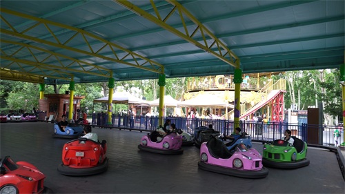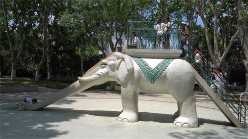 从南门进入后位于道路左侧便是儿童游乐场,这儿有碰碰车、旋转木马、跷跷板、大白象滑梯、荡秋千等多种游乐设施。