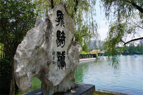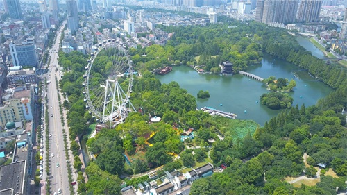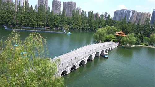 炎炎的夏日也阻挡不了人们游园的热情,时值晌午烈日当空,逍遥津公园内游人仍络绎不绝,许多来游园的人在公园南门前拍照留影。逍遥津公园在合肥诸多公园中应当仁不让尊为老大的地位,不仅拥有悠久文化历史底蕴,而且园内环境优美、游乐设施十分齐备,如果其自称第二,那么合肥没有哪个公园敢于称第一的了。