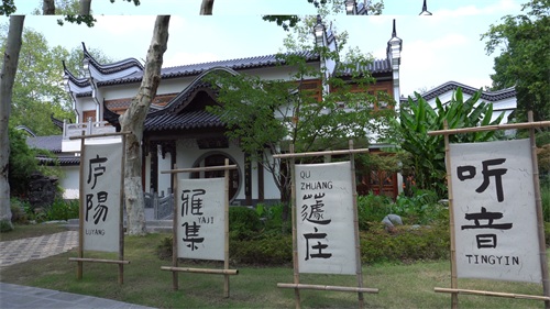 西园种植大量绿色植被,并建有诸多亭廊,如:牡丹亭、杜鹃亭等,亭榭周边配有山石。公园内有许多指示路牌,从逍遥阁西行经过“蘧庄”和“豆叶亭”便来到“三国合肥历史文化馆”,文化馆参观是需要收费的,门票10元,若要体验飞行影院还需另购门票,对此处的历史不太感冒,我只在门口拍了一下,便退了出来。