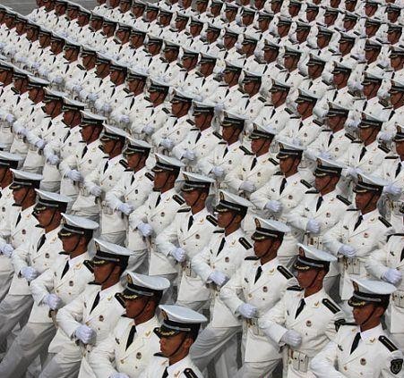 上世纪50年代中期,在国家的大力支持下,人民海军又花巨资从国外引进技术、材料,组装了多艘当时世界上先进的护卫舰,进一步壮大了人民海军力量。到1955年底,人民海军已拥有各种舰艇800余艘、飞机500余架,各种口径海岸炮、高射炮600多门。并先后组建了水面舰艇部队、潜艇部队、海军岸防兵、海军航空兵和海军陆战队等5个兵种,初步形成了一支诸兵种合成的可用于近海作战的轻型海上战斗力量。