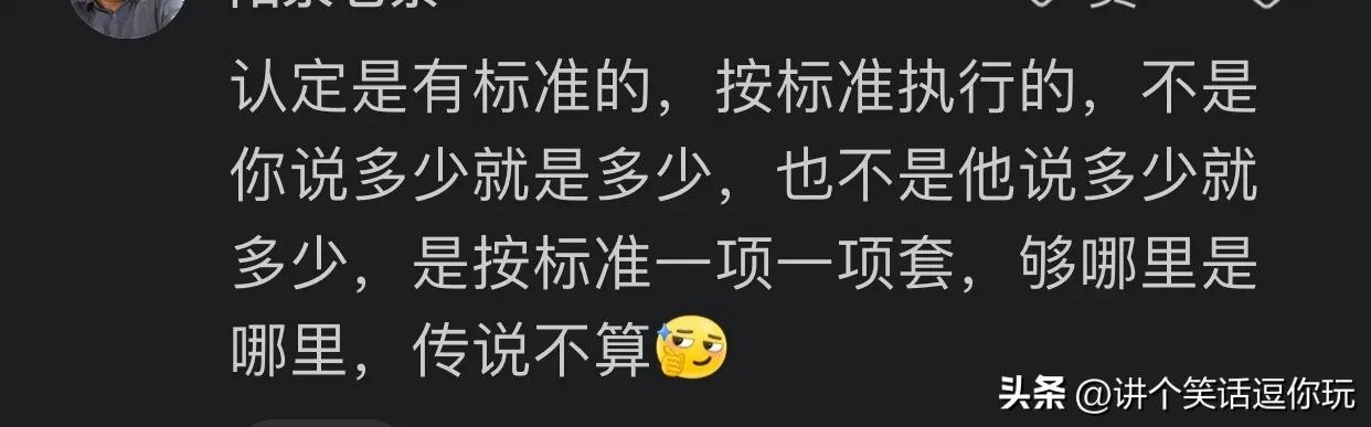 认定是有标准的,按标准执行的,不是你说多少就是多少,也不是他说多少就多少,是按标准一项一项套,够哪里是哪里,传说不算