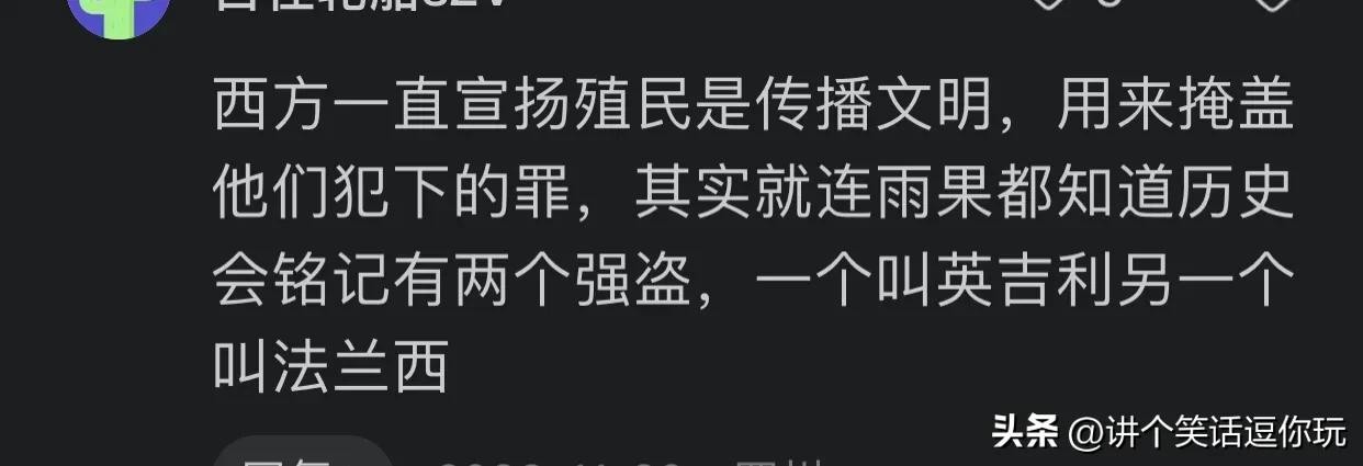 西方一直宣扬殖民是传播文明,用来掩盖他们犯下的罪,其实就连雨果都知道历史会铭记有两个强盗,一个叫英吉利另一个叫法兰西