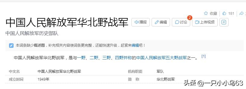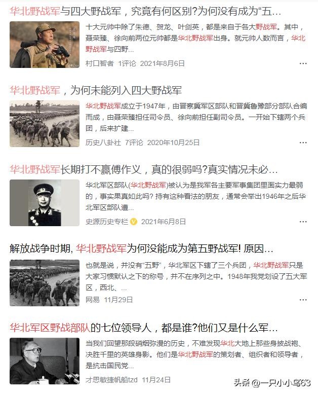 有人就会问了,不是说有五大野战军吗?搜索网络发现,确实有第五大野战军,即华北野战军,某度百科上也有华北野战军的词条。