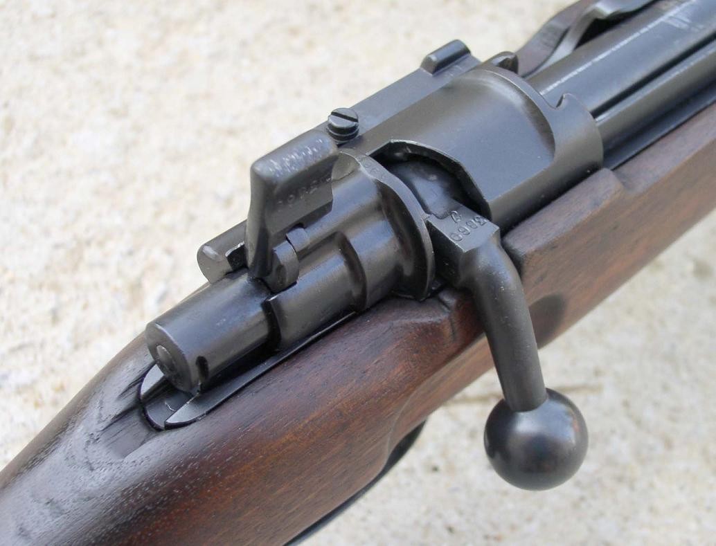 98k枪机是击针击发式,当枪机旋转打开时,击针后移处于待发状态,此时枪机可以平滑拉动。