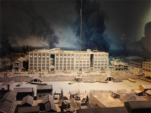 我看到真人大小制作的场景中,有几幅感触颇深:一副是“同写遗书”,这些将士在战斗间隙,写一封简短的遗书,把这次承担的光荣任务与必死的决心,向家人作个交代;一副是副班长陈树生为了攻克日军钢板防护,浑身绑满手榴弹从楼上跳下与侵入日军同归于尽的画面。不管是写遗书还是英勇赴死,都是那么的淡定从容,看的我们惊心动魄。 再一幅是当时四行仓库周围插满了膏药旗,一天夜里,一位叫杨慧敏的女童子军冒着生命危险游过苏州河,将一面国旗送到了四行仓库。在全是膏药旗的战场上,终于飘扬起了唯一的一面中国旗帜。当守军将这面国旗在四行仓库升起时,所有人都哭了,在南岸观战的外国人见到这一幕也忍不住流泪。据说,当时的《申报》报道:朝曦初上,国旗飘展,隔河民众经此地,纷纷脱帽鞠躬,感动落泪。看着记录了452名中国将士的名牌墙,耳边似乎回荡起枪炮声和他们的喊杀声,是他们的奋不顾身,唤醒了国民的民族觉醒,而他们留下的只有姓名,甚至有些连姓名都没能留下,还有那么多的空白名牌在等待着他的主人的到来…
