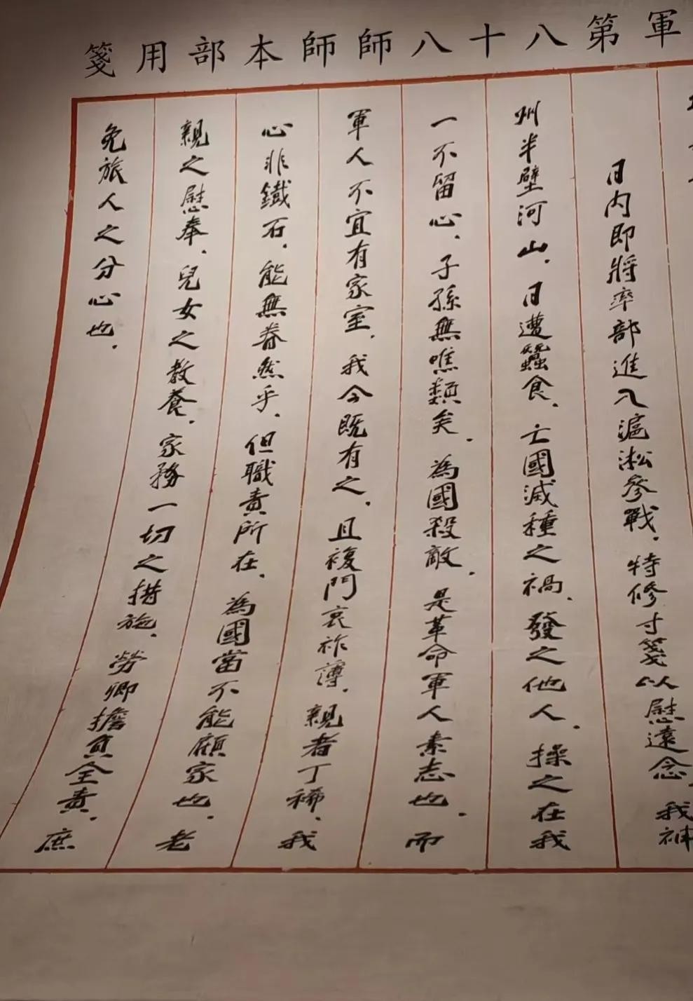 走进展厅,首先看到的是谢晋元写给妻子的家书,
