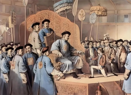 清朝的思想意识相对落后,统治者实行闭关锁国政策,自认为是“天国帝国”,对外无所求。