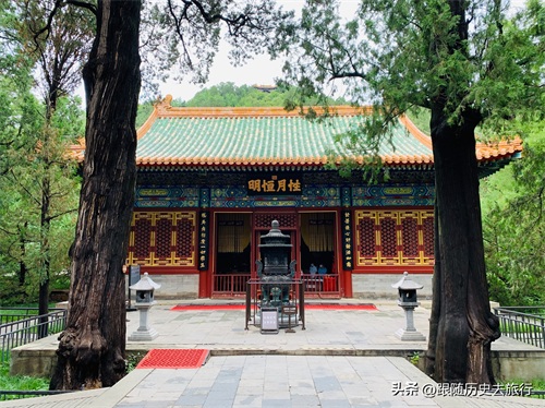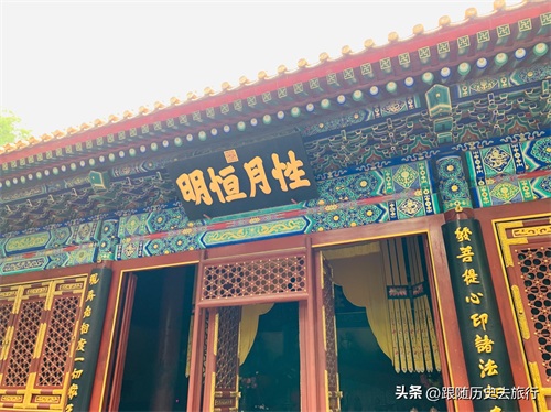 殿前的门额上悬挂的“性月恒明”牌匾,还是慈禧太后亲手题写的,大家觉得,老佛爷的字写得怎么样?