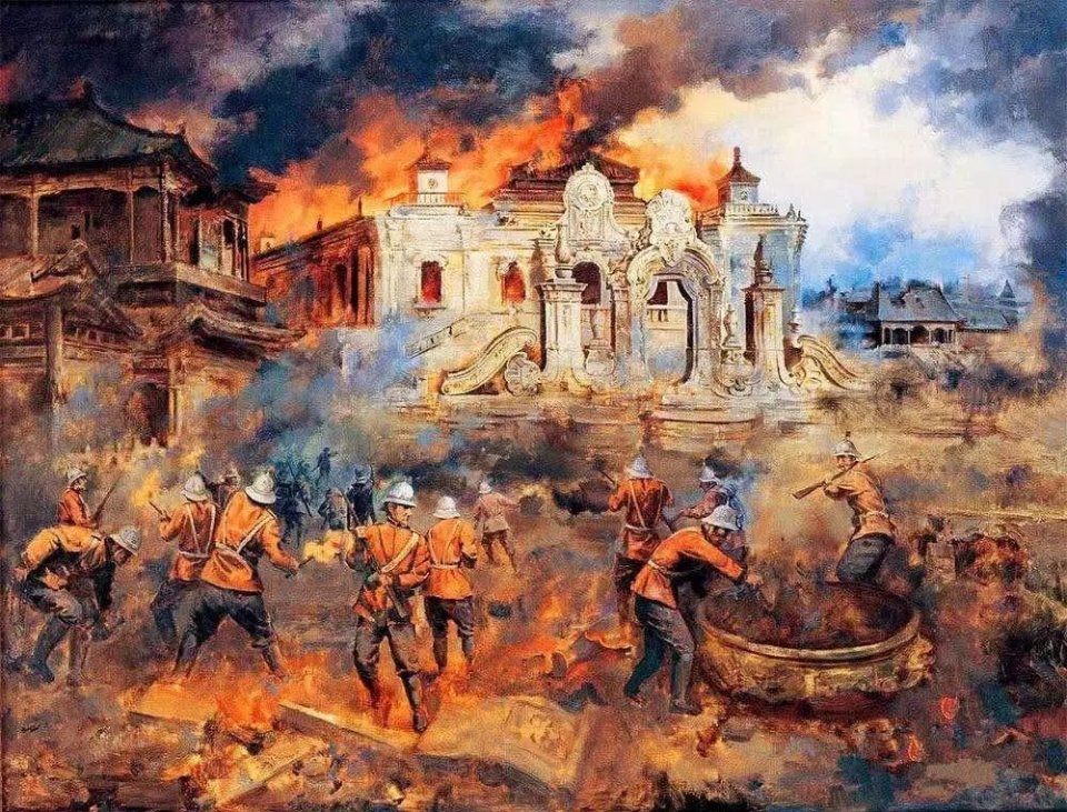 1860年10月英法联军火烧圆明园。