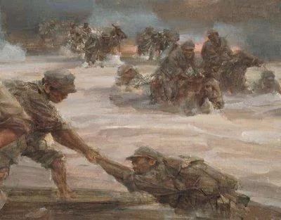 红军穿越湘江,背负着生存的压力,一路风尘仆仆。他们在战火硝烟中行军,承受着饥饿、疲惫,但依然坚韧不拔。这一段峥嵘岁月,见证了红军不畏艰难、勇往直前的精神,也让湘江战役的艰辛征程成为中国军人的传世佳话。