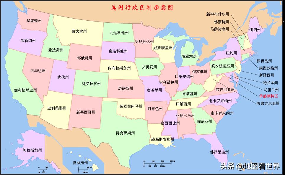 美国全称美利坚合众国(the United States of America),面积约937万平方公里(或963万平方公里),是世界上第四大(或第三大)的国家,行政上划分为50个州和1个哥伦比亚特区(即首都华盛顿)。