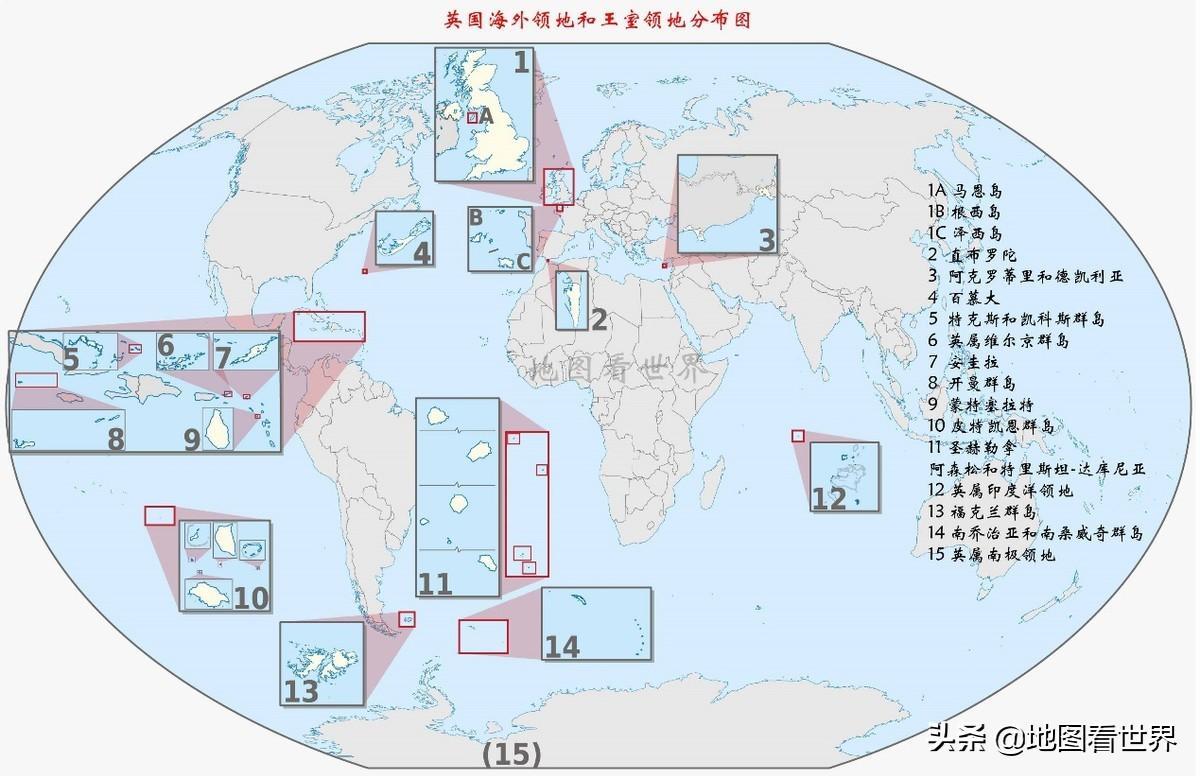 除了本土外,还有主权归英国但不属于英国建制的14块海外领土。泽西岛、恩西岛、马恩岛属于皇家属地,名义上不属于英国的一部分,英国议会通过的法案通常不适用于皇家属地,英国缔结的条约也通常不适用于皇家属地,但皇家属地居民是英国公民。