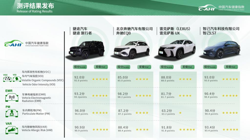 此次发布会期间,中国汽研 2025 年第四批 IVISTA 中国智能汽车指数和 C-AHI 中国汽车健康指数的测评结果。 根据 2025 版测评规程,日产 ARIYA 艾睿雅为 2 星,奔驰 EQB 为 3 星,smart #3 为 4 星,其余车型智能星级评定为 5 星。