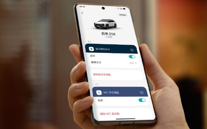 新增 NIO Phone 解锁:携带 NIO Phone 近车,按压门把手解闭锁。