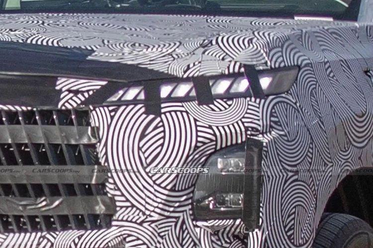 外观上,新车采用大气饱满的设计,中网的尺寸很大,虽然细节带有伪装,但还是能看出与之前发布的概念车样式基本相同。细节上,新车将采用分体式大灯组,上方是狭长的日行灯,下方是主大灯区域,样式看上去比较普通,不知道点亮后效果如何。