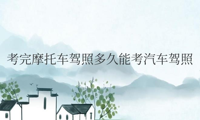 在中国,驾驶摩托车和驾驶汽车的驾驶证属于不同的考证类型,考生须先考取摩托车驾驶证,再考取汽车驾驶证。那么,考完摩托车驾照多久能考汽车驾照呢?