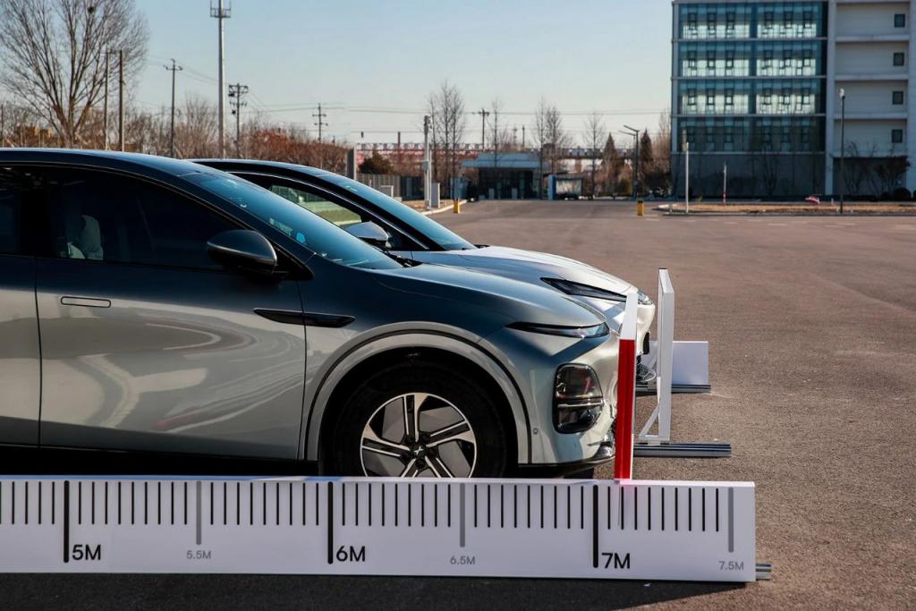 车辆按照设定路线行驶,在快要碰到障碍物时进行紧急制动,从而考验制动时的顺滑感。小鹏 G6 在制动时无论是缓慢踩刹车还是全力踩刹车,体感都会有明显反馈,也就是俗称的制动点头情况,略显突兀,顺滑感不佳。