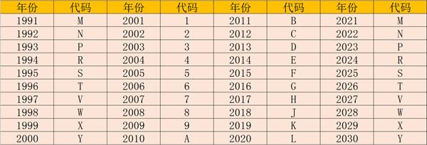 车架号第十位可以看车辆生产日期。生产年份由1、2、3、4、5、6、7、8、9、A、B、C、D、E、F、G、H、J、K、L、M、N、P、R、S、T、V、W、X、Y 30个字符,30年一个轮回周期。比如说第十位是字母A,这个时候就表明车辆是2010年生产的。如果车架号第十位是字母B的话,这个时候就代表该车辆是2011年生产的。除此之外,车主也可以通过查看车辆的车架号,来了解到车辆的生产商、生产地、车辆类型等信息,因此有时候车架号也会被说成是车辆的“身份证”,当车主想要查询车辆的一些基本信息时,可以直接通过查看车辆车架号来获得。