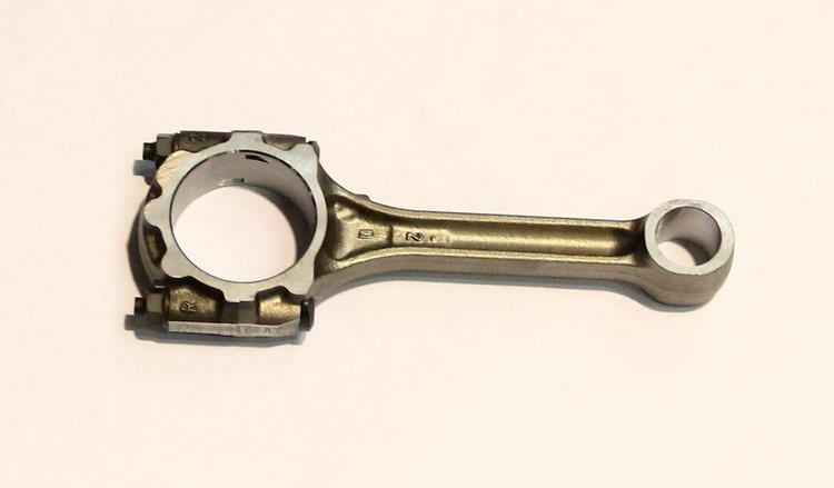 发动机连杆由连杆大头、杆身、连杆小头三部分组成。连杆大头:连杆大头与曲轴的连杆轴颈相连,以便与连杆轴承或滚动轴承紧密贴合。杆身:一般为“工”字形断面,用于润滑连杆小头衬套并冷却活塞头部。连杆小头:连杆小头与活塞销相连,工作时连杆小头与活塞销相对转动全浮式。