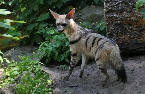 土狼(学名:Proteles cristatus)体长约80厘米,肩部高而臀部低;从头后到臀部的背中线具有长鬣毛;全身棕色,但体侧和四肢均有棕褐色条纹;尾长30厘米,尾毛长而蓬松。前臼齿小而尖,仅2枚,臼齿仅1枚且退化,不适于强力咀嚼肉类。前脚有5个脚趾,不同于有四个脚趾的其他鬣狗。受攻击时会喷出有麝香气味的液体,可能与攻击者搏斗。除进食柔软的腐肉、鸟卵外,主要食物是白蚁。舌较长而发达,可舐食白蚁。白天隐藏于地穴中,晚上出来寻食。冬末产仔2-5只,雌雄兽共同哺育,在尾根下有1囊状腺体,其分泌物用于标记领域。土狼栖息于草原、旷野等地带。习见于视野开阔的生境,如长有仙人掌的石砾荒漠和半荒漠草原、低矮的灌丛等。分布于非洲西海岸和南部。