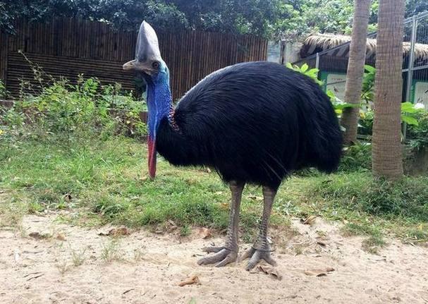 食火鸟属于大型而不能飞翔的鹤鸵目食火鸟科,是世界上最古老的鸟类之一,它是鸵鸟的近亲,由于体积庞大,翅膀早已退化至不能飞行。食火鸟常收集树叶或树枝在大树的根部筑巢,雌性食火鸟每次生下三个到六个淡绿色的蛋。成熟的食火鸟身长约一百五十公分,体重约八十公斤,两翼已经和胸骨一起退化,食火鸟有一个高耸的角质冠,像钢盔一样保护着光秃秃的头部,当它们横冲直闯时,可以排除挡路的树枝。其奔跑的速度每小时高达五十公里,而且它们也有游水的好本领。表面看起来温顺,但是实际上脾气很暴躁,常常主动挑衅。如果你靠得太近,被认为是"恐怖分子"的话,他们就会悍然的发动"先发制人"的攻击--可能导致骨折的啄伤。当然,运气好一点的可能只是被该鸟的匕首型爪子划伤。照顾这种濒危鸟类的动物园人士却面临着来自这些鸟的安全威胁。2004年吉尼斯世界记录把它列为世界上最凶猛的鸟之一,因为这种鸟"参加"过二战——曾经伤及驻扎在新几内亚的某国士兵。