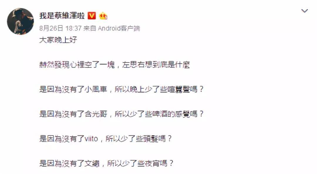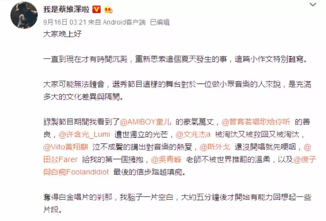 节目虽然结束,但这绝不是蔡维泽你的终点,你也绝不限于一个节目的第一名。