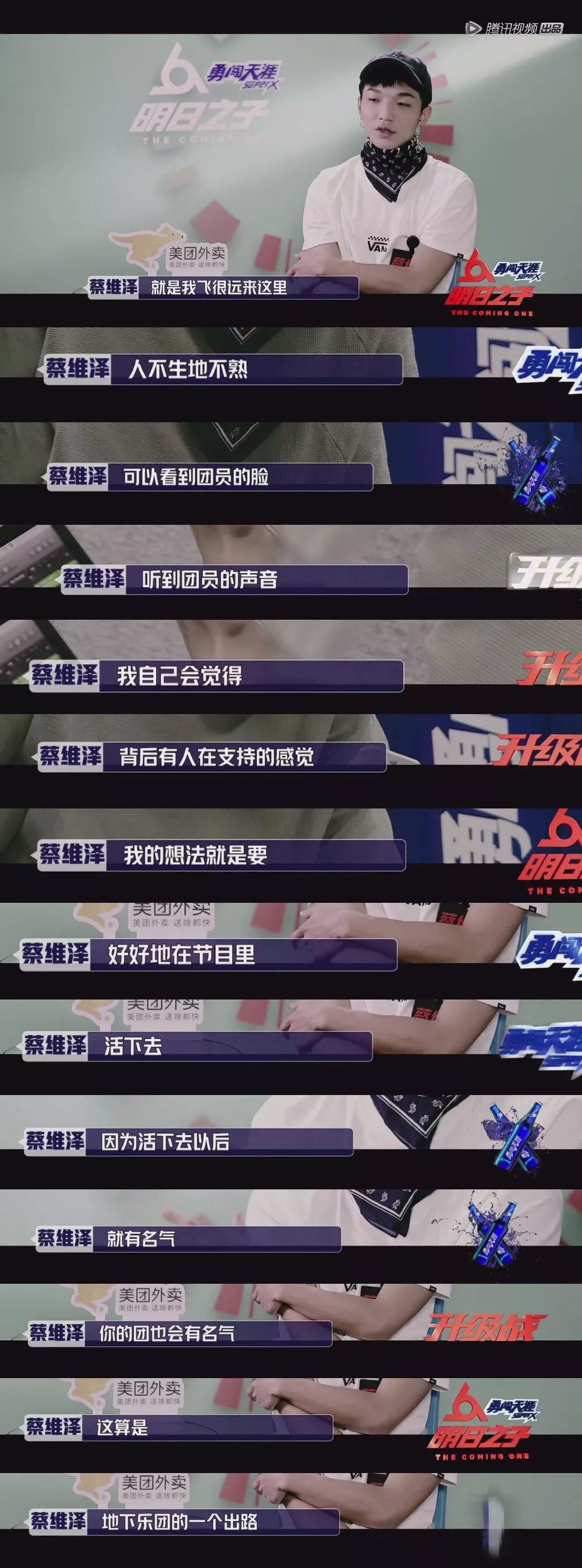 节目刚开始的时候,蔡维泽表现的很冷漠,不爱说话,队友试图跟他搭讪都只回答“嘿”、“嗨”等。