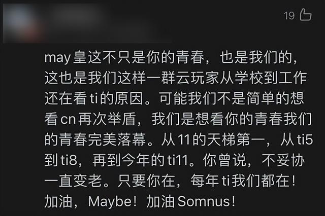 对于此时 19 岁的 Maybe 来说,剩下的目标就只有那个 DOTA2 的最高舞台 Ti 了。