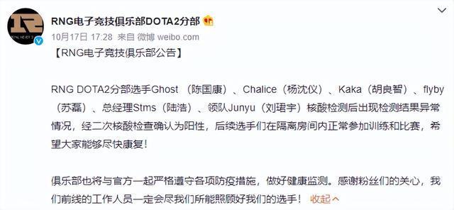 就在几天之前, RNG DOTA2 分部除了场上的 Xnova ,全员都被确诊得了新冠。