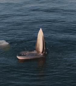 但是,有的时候座头鲸在猎食的时候看走了眼,也会把靠得太近的人吞到嘴里。2020年,一名游客在美国加利福尼亚海边划皮艇时,被一头突然冲出海面的座头鲸吞进了嘴里。不过很快就被吐了出来,游客只是受到了一场惊吓而已(见上面的动图“误入鲸口的游客”)。