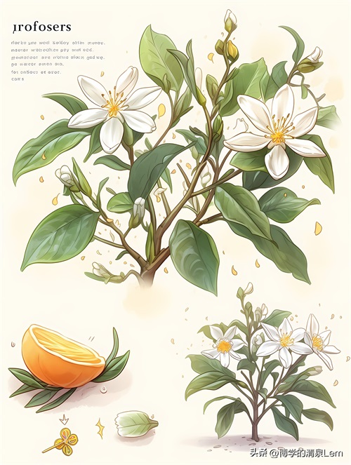 10. 橙花(Citrus aurantium):橙花是橙树的花朵,具有鲜艳的香气。橙花的香味被广泛用于香水、茶和烹饪中。