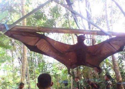 秘鲁军队捕捉了这只宏大的“蝙蝠”,翼展差不多有七八米宽,个头差不多是一团体类的个头了。这大家伙不断让毗连秘鲁亚马逊丛林的外地人感到惧怕,由于它常常袭击穿越丛林的人类,举动矫捷,吸血,有毒,已经咬死过几头牛。