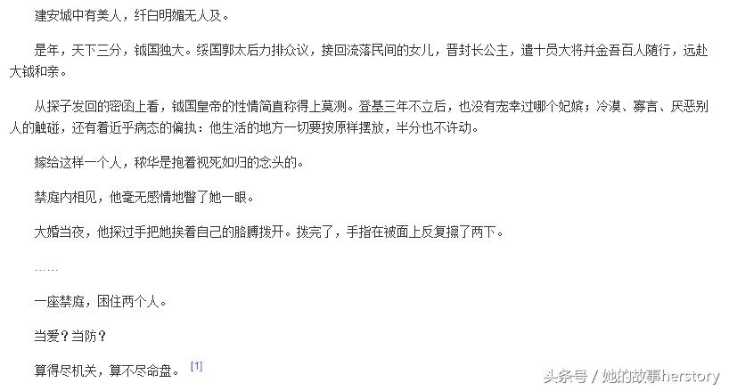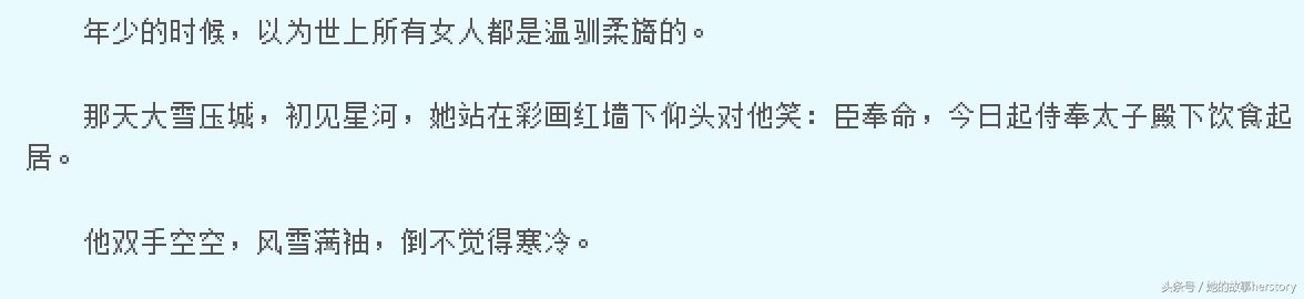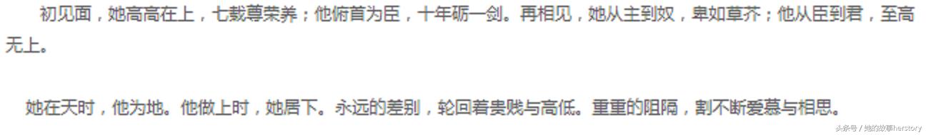 每篇文的朝代背景说话方式什么的,都能看出尤四姐是做过功课的,对一些细节描写非常到位,让人感同身受。尤四姐的文我看了四篇之后隐约觉得有一点硬伤,就是男主角后期都会失去冷静理智的性格,与刚开始的高冷自持的设定相去甚远,好像都要为了美人放弃江山的感觉。但是尤四姐的文确实是非常精彩的,人物矛盾情节冲突写的让人有如置身其中,跟着书中人物悲喜。