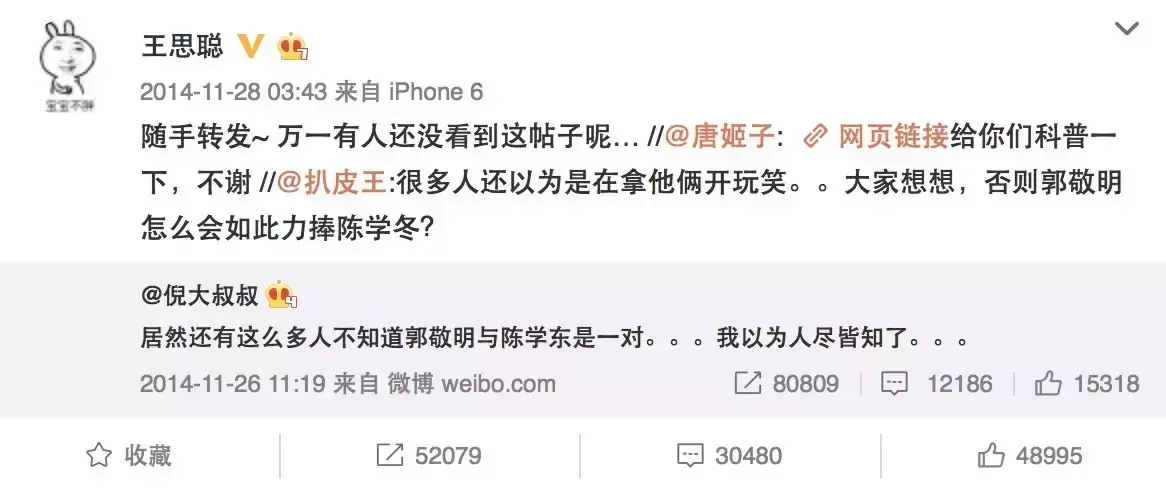 事件慢慢发酵,早被删帖的旧闻《郭敬明和他的金丝雀》(郭敬明和陈学冬的日常)又被有心网友扒出。王思聪也曾“热心”地转发过这条帖子。