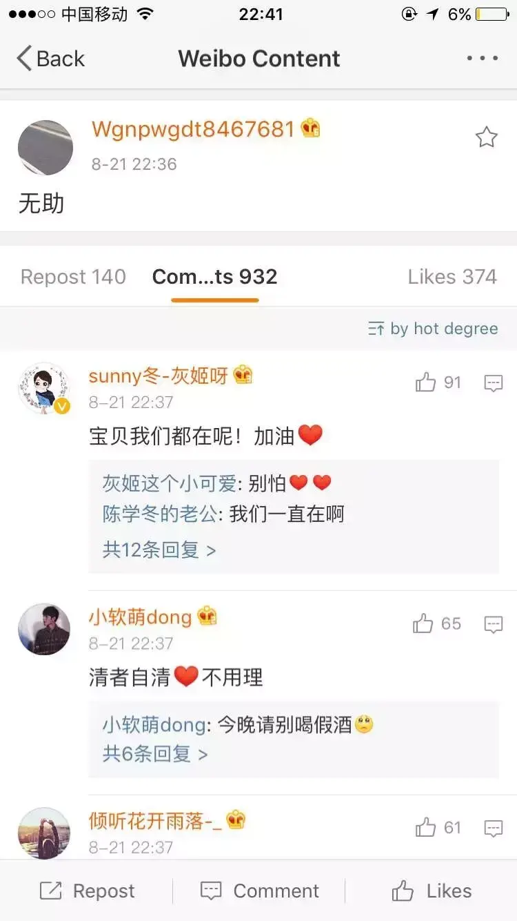 莫名其妙的是,此时陈学冬的微博小号也出来凑热闹。此刻,陈学冬本可以缩起头来做人,可他偏偏不。一句苦情的“无助”。