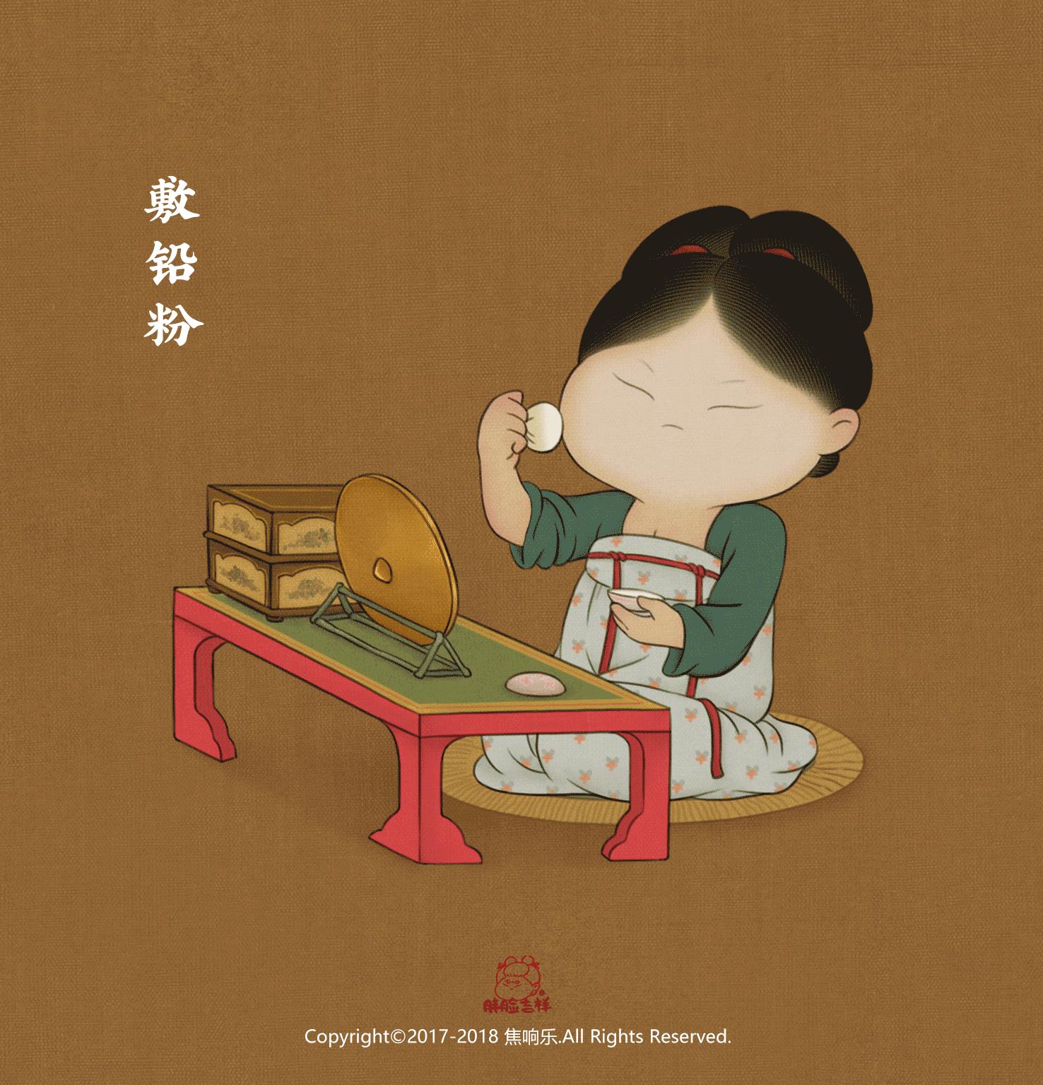 铅粉的作用就和现在的粉底液差不多,是在开始化妆之前擦的一种粉。唐代女子喜欢用很厚的铅粉从额头一直敷到脖颈,使肤白如雪,以此为美,古称铅华,"洗尽铅华"就是这么来的。(注意,现代科学证明,铅是有毒物质啊,可惜古人不知道)