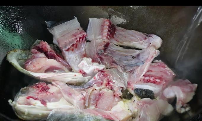 起锅倒油,将油用炒勺滑一下,使整个锅内都粘满油,油烧热后,把鱼块放下去煎一下,煎一、二分钟后,再加入一点水,这样的鱼肉吃起来肉质更加细嫩一些。