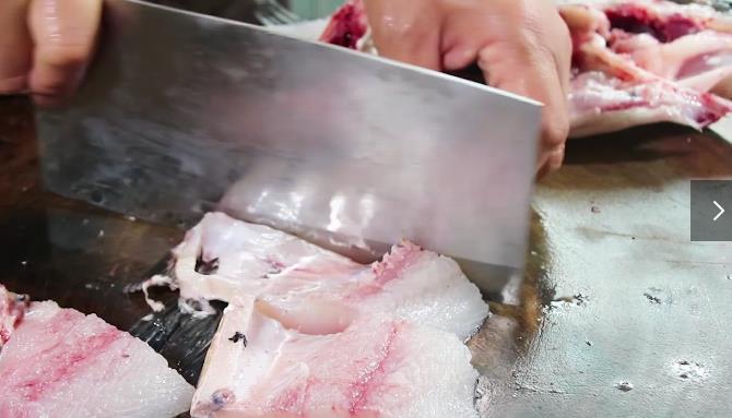首先把雄鱼处理一下,除去内脏、刮去鱼鳞,用水冲洗干净。把鱼放到案板上,剁成大一点的鱼块备用。