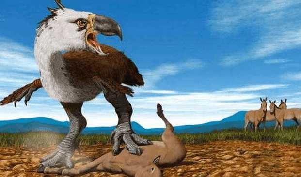 骇鸟捕食野马。又被称为“恐鸟”,是一种肉食性、不会飞行的鸟类,是现今南美洲境内最大的掠食性动物,生活在6200万-200万年前,身高达1-3米,猎物主要是一些小型哺乳动物,有时会吃马。