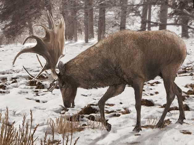 大角鹿,生存于更新世晚期及全新世早期的欧亚大陆,大约于7700年前灭绝。