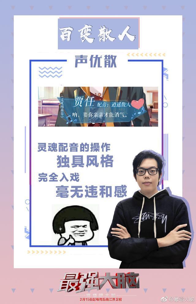 在即将到来的《最强大脑》节目中,我们期待看到逍遥散人在游戏之外与其他脑力王者脑力对抗的精彩表现,期待看到他勇于挑战坚持攀登的人生精神,期待看到这个B站大神、网络红人在《最强大脑》的舞台上王者归来。