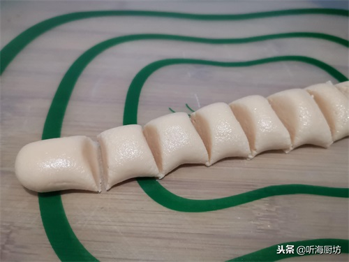 4、再将圆球搓成长条,切成大小均匀的小剂子。大小可以根据自己喜欢的来分,想吃大的可以切大一些。