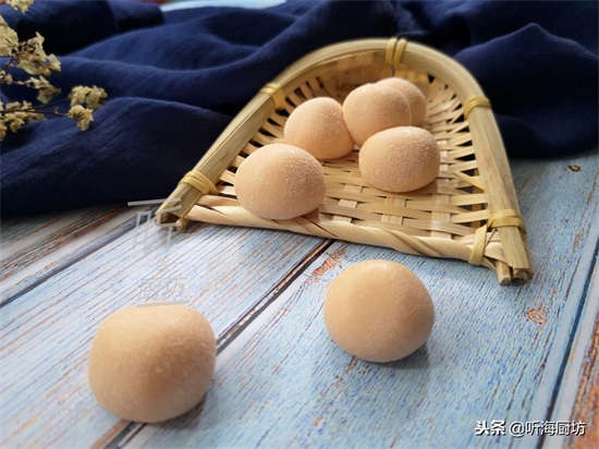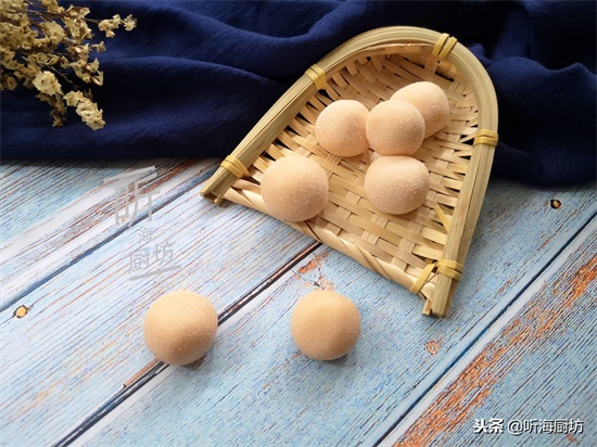 5、将切好的揉搓成小圆球,再放入奶粉中滚一圈,沾上一层奶粉即可。