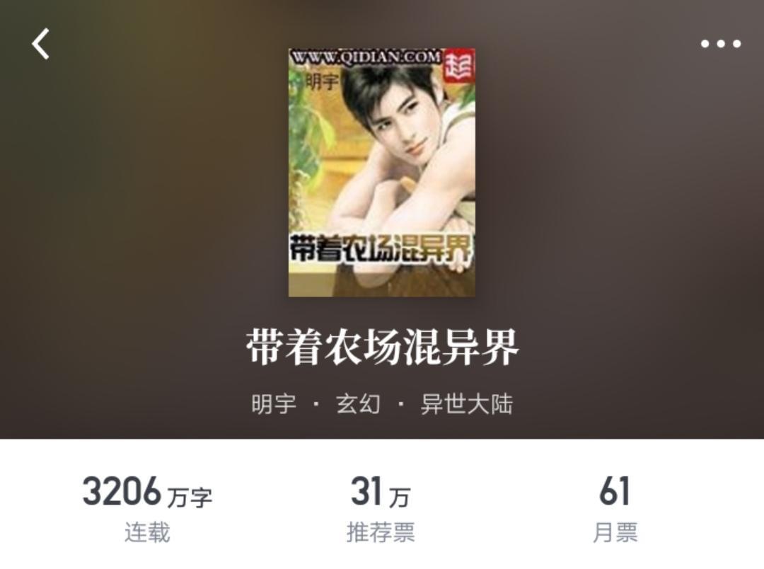 它就是明宇的《带着农场混异界》,3206万字,比从零开始多了近一千两百万字。