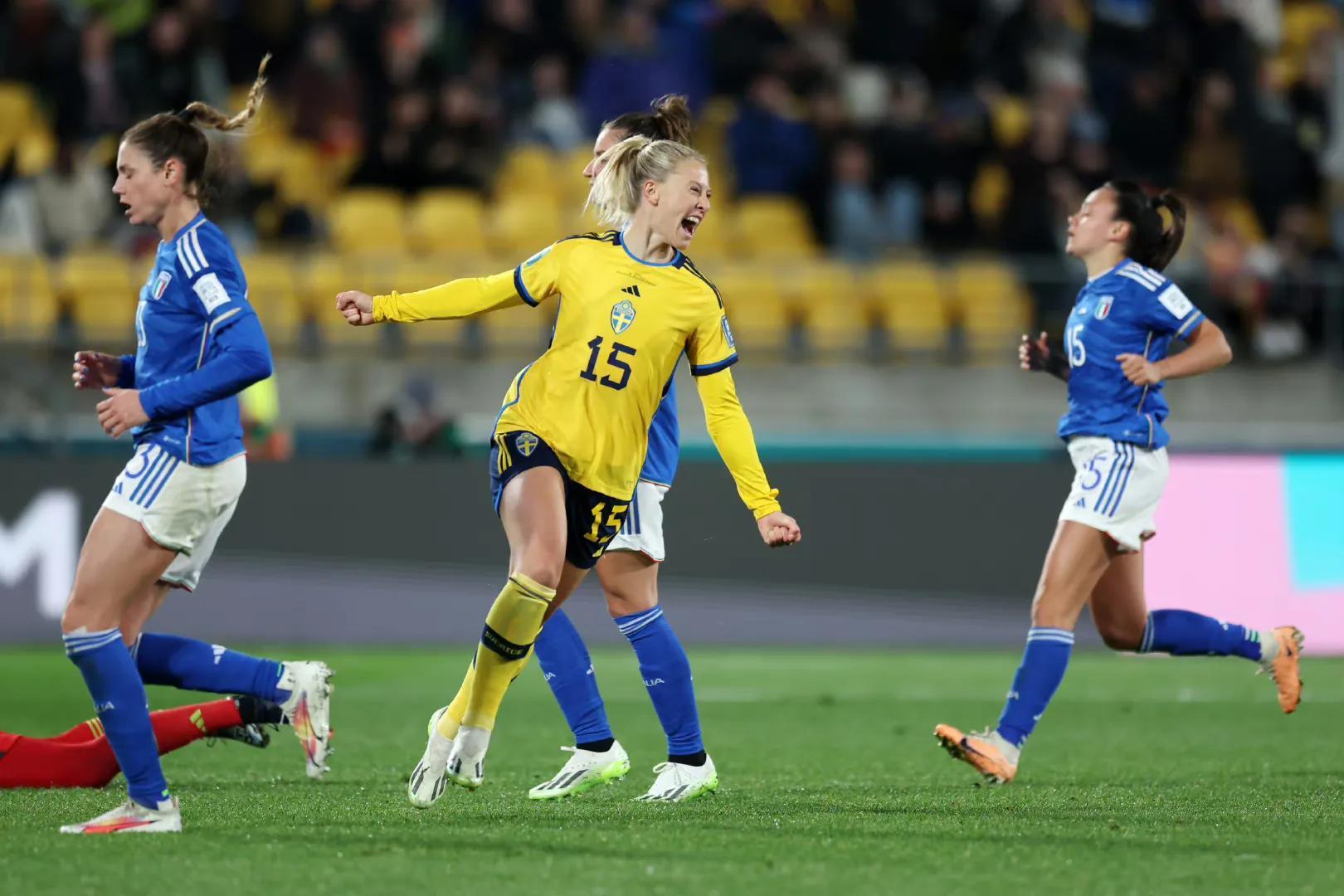 回到下半场第50分钟安德松主罚角球传中助攻伊勒斯特德头球完成梅开二度,补时阶段布洛姆奎斯特替补进球锦上添花,全场结束瑞典女足5-0大胜意大利女足取得两连胜。G组形势瑞典女足积6分提前1轮出线,意大利女足1胜1负积3分第2,南非和阿根廷女足1平1负积1分。